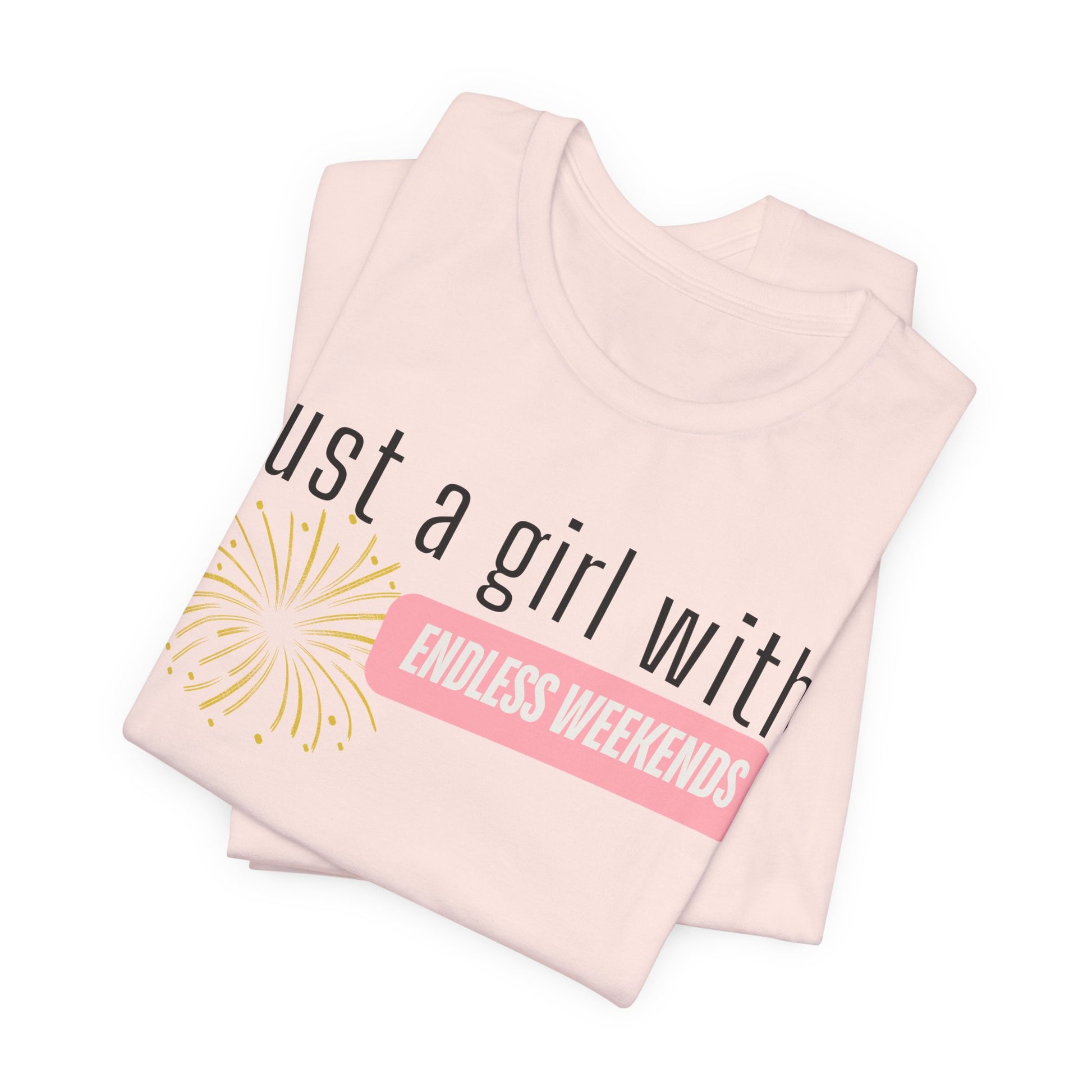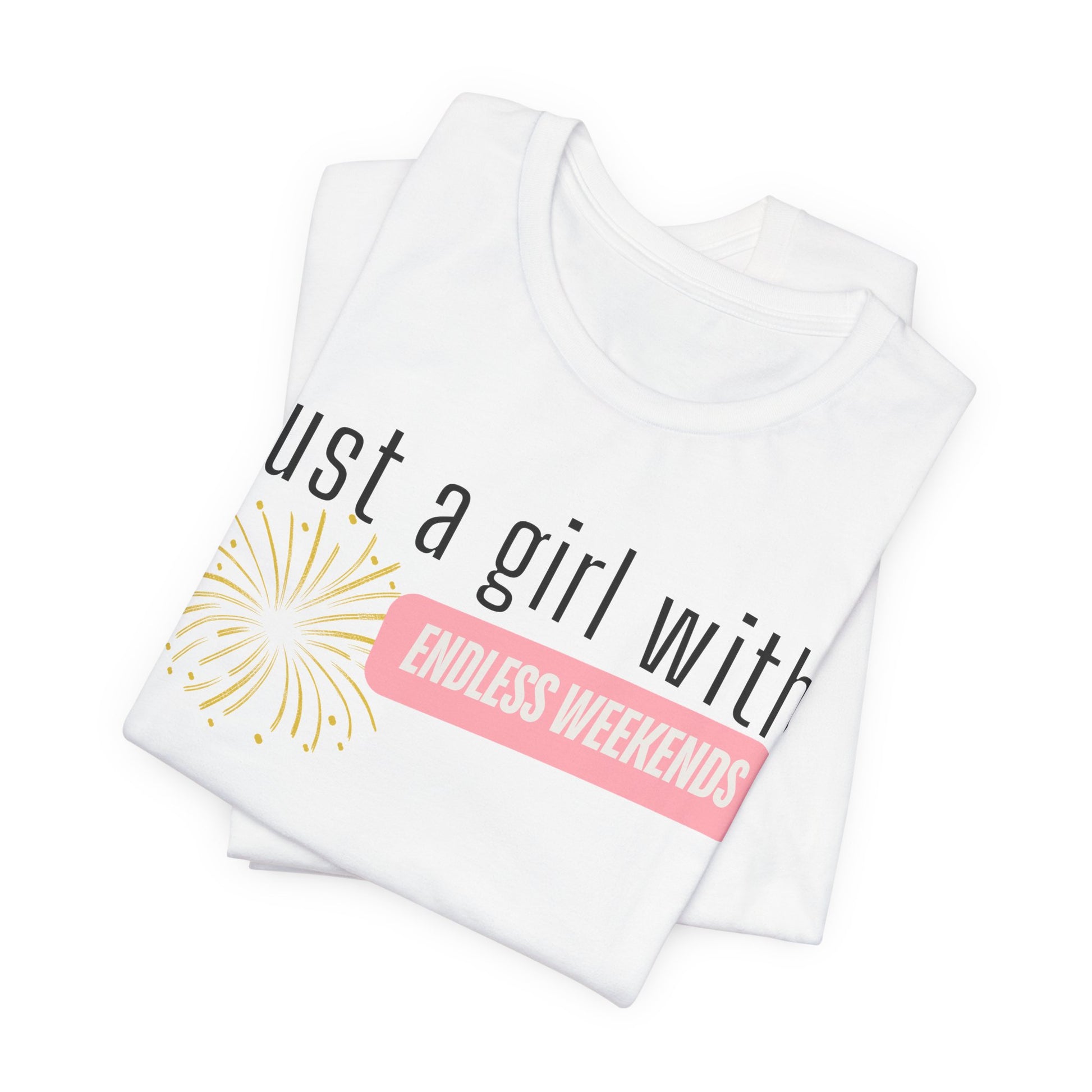 This "Just a Girl with Endless Weekends" tee is your retirement uniform- comfy, cute, and made for living life on your own schedule. Soft cotton and quality print make users fall in love with it over and over again. These t-shirts have ribbed knit collars to bolster shaping. The shoulders are tapered for a better fit over time, and dual side seams hold the garment's shape for longer.